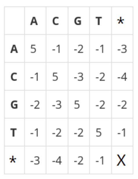 문제 이해 틈과 불일치의 페널티를 문제 조건으로 주고 최적 정렬의 총 손해를 알아내는 DNA 서열 정렬 알고리즘을 본 적 있는가? 이 문제는 그 페널티가 각 케이스마다 다르게 2차원 배열로 주어졌다. 최적 정렬을 구하는 계산은 다음 중 하나로 시작한다. 두 배열 X, Y에서 X[0]은 Y[0]과 정렬한다. X[0]은 틈과 정렬한다. Y[0]은 틈과 정렬한다. 이 표는 주어진 조건이라 나는 const 2차원 배열로 저장했다. 다이나믹 프로그래밍- 점화식 최적 정렬의 손해를 저장하는 2차원 배열 opt를 채우는 점화식을 세우자. opt[i-1][j-1] + score[ Xseq[i-1]][ Yseq[j-1] ]; opt[i-1][j] + score[ Xseq[i-1] ][4]; opt[i][j-1] + sc..